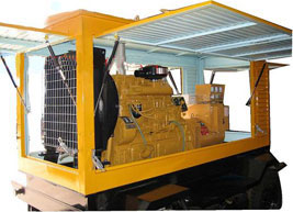 谷城柴油发电机组/移动柴油发电机组设计独具创新,机动性高、重心低、制动安全、制造精良、外形美观。 谷城拖车车架采用槽梁焊接成框架结构,节点选择合理、强度高、刚性好;同时装有钢板弹簧悬架结构;拖车采用高度可调节插销式牵引架,适用于各种高度牵引车;采用圆形钢管焊接直通式车轴,结构紧凑,安全可靠;车架四角设有机械式支撑装置,配备惯性行车制动、驻车制动和脱离应急制动,确保机组在各种状况下的安全;车架前端设有支撑轮,具备承受机组垂直载荷的功能的同时还具备导向功能;整车配备转向和刹车指示灯,同时装有尾灯标准插头